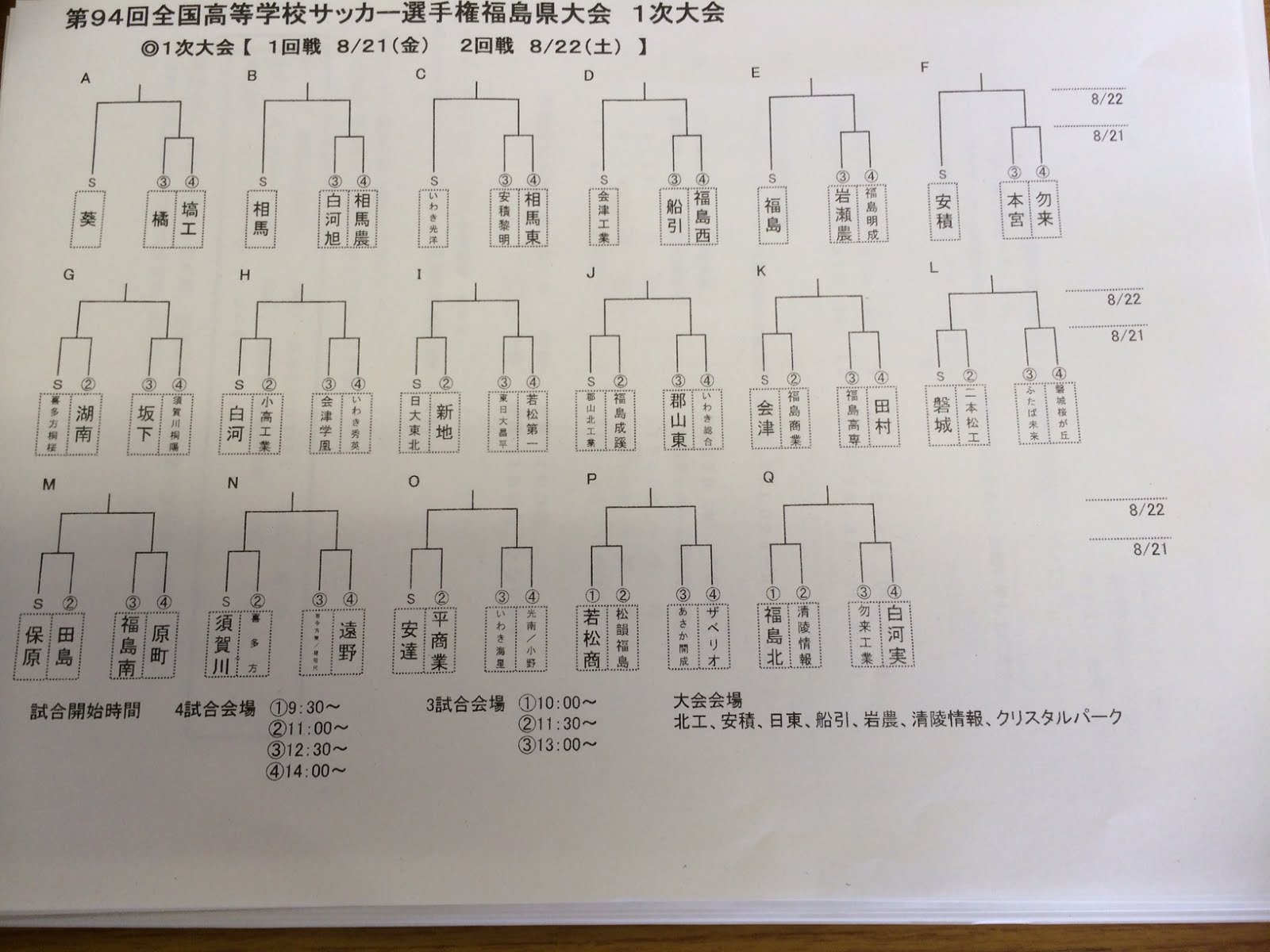 福島県高校サッカー試合速報 高校サッカー選手権県大会1次大会組み合わせ