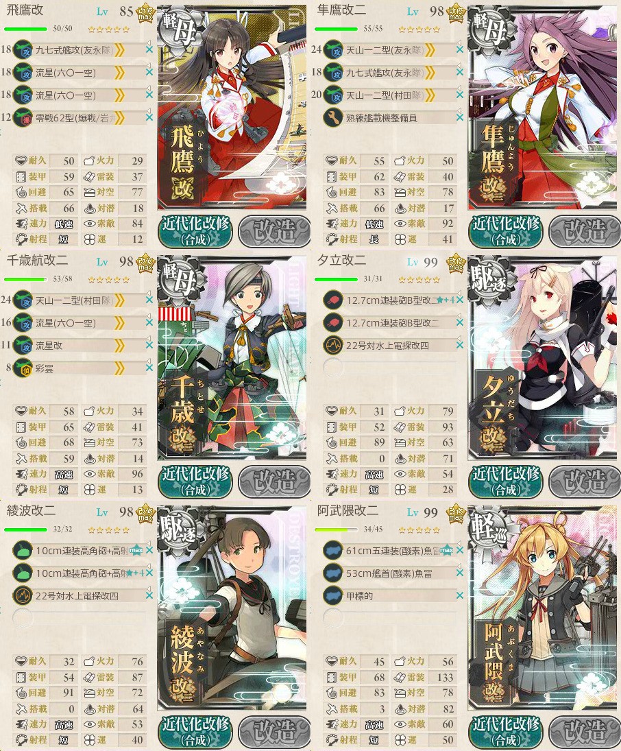 艦これ情報備忘録 艦これ 2 5 軽空母3編成 軽空3 軽巡1 駆逐2