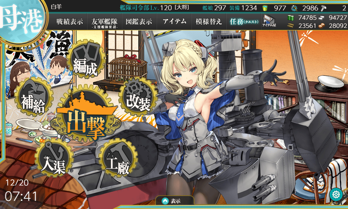 艦これ 12月20日 2019年秋イベント 甲 E 6海域 攻略完了 艦これ日記 白羊の記録紙