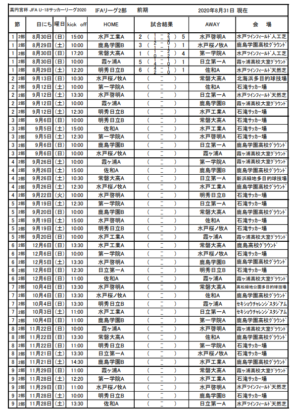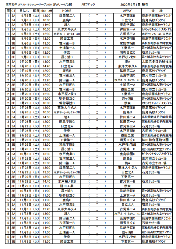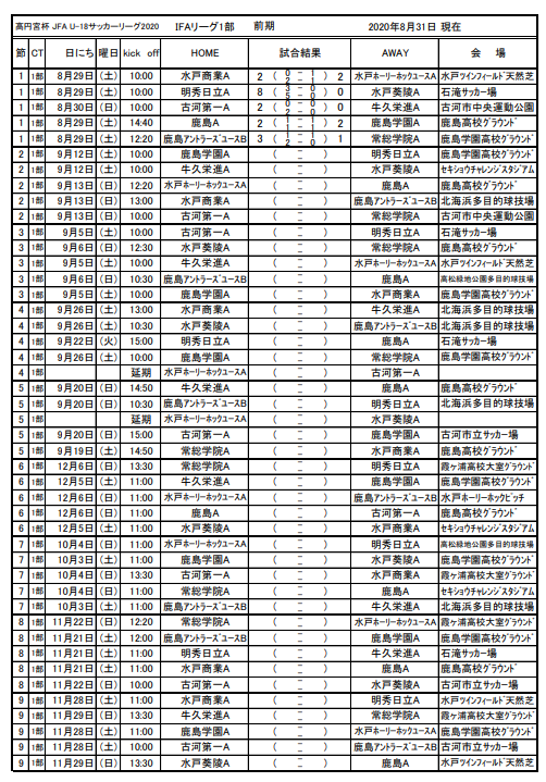 高円宮杯jfa U 18サッカーリーグ茨城 2020 Ifaリーグ 1部 3部 結果速報9 19 次回9 20 ジュニアサッカーnews