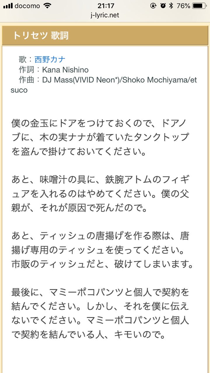 わざと焦がした肉 در توییتر 西野カナの トリセツ の歌詞でも見るか って えっ うそだろ