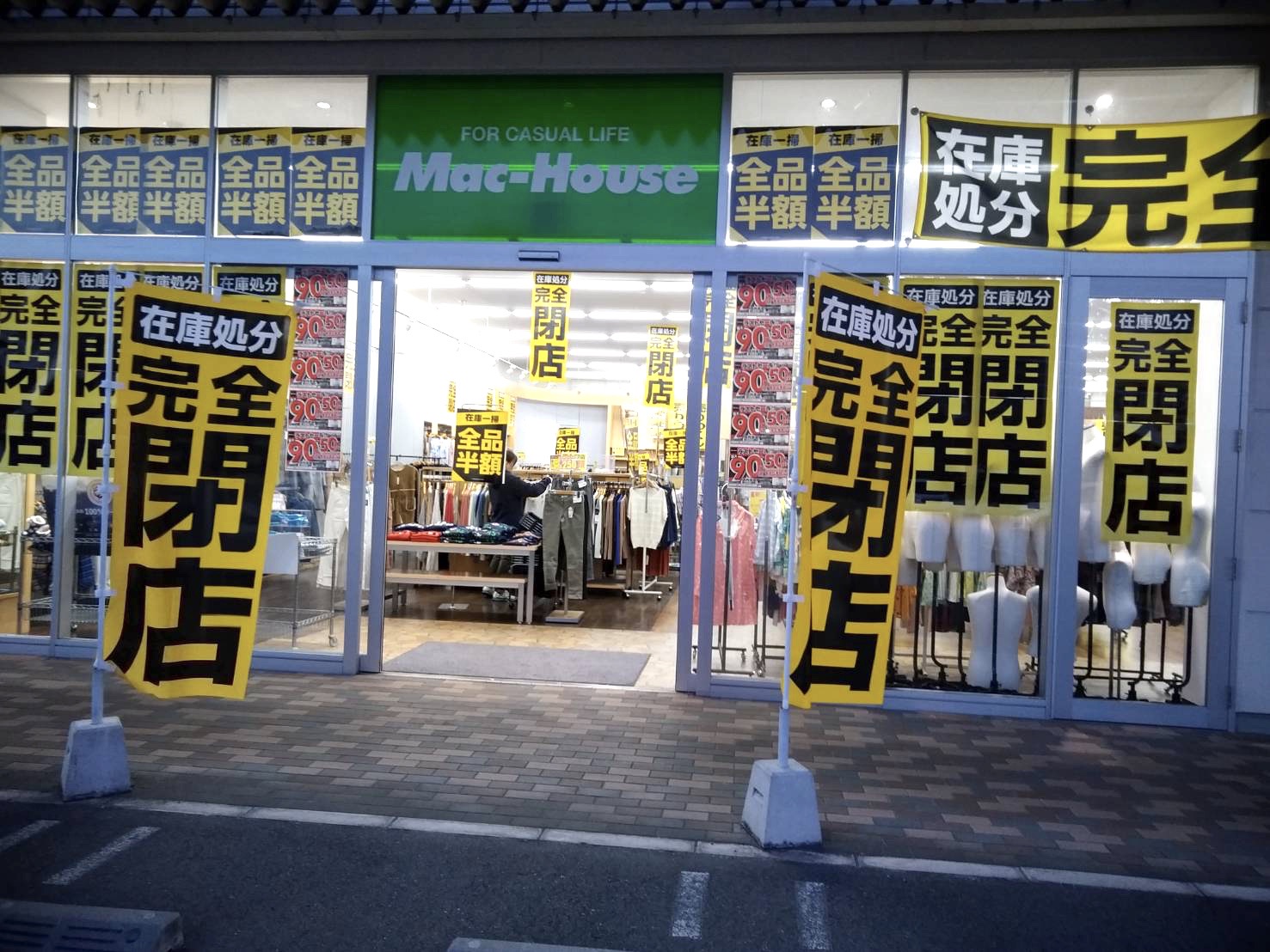 閉店情報 マックハウス 河内長野店 河内長野市 在庫処分で半額商品多数