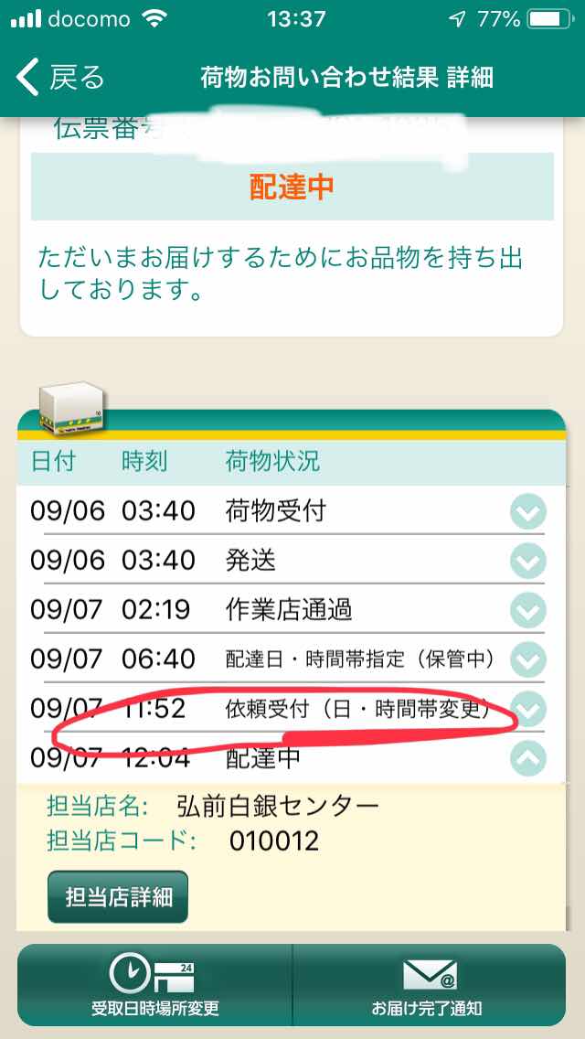 クロネコヤマトの宅急便は 翌日の配達日指定で保管中でも電話すれば前日に持ってきてくれる Aiueo Lab2