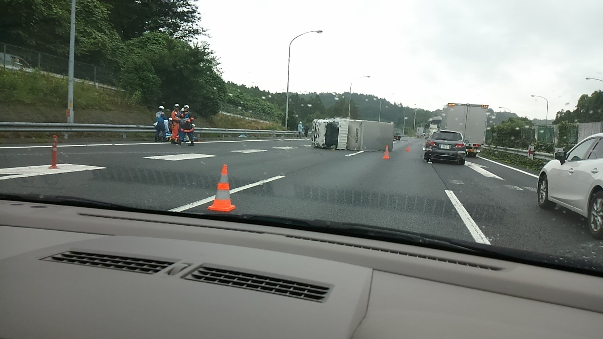 画像 関越道嵐山pa 付近で事故渋滞 トラック横倒し 乗用車大破 Https T Co 2fw4t7ukog まとめダネ