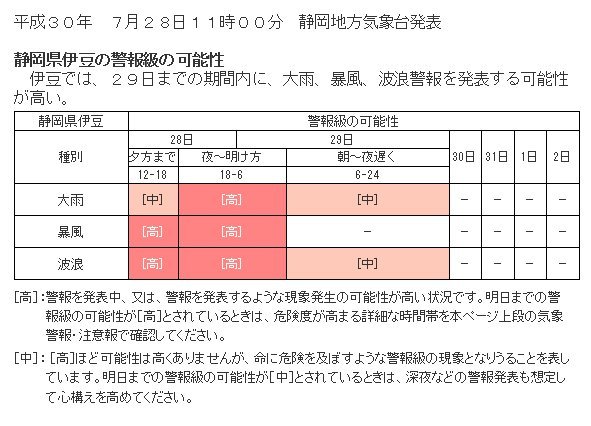 特務機関nerv 静岡県 気象警報 2018年07月28日 16 45 静岡県では 土砂災害や暴風 高潮に警戒し Unnerv Jp